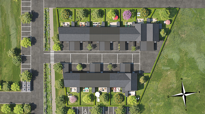 Chaque maison jouit d’une identité architecturale propre : couleur de façade distinctive, forme de toiture différenciée et jardin privatif clôturé. Un cadre de vie soigné, idéal pour s’épanouir en famille.